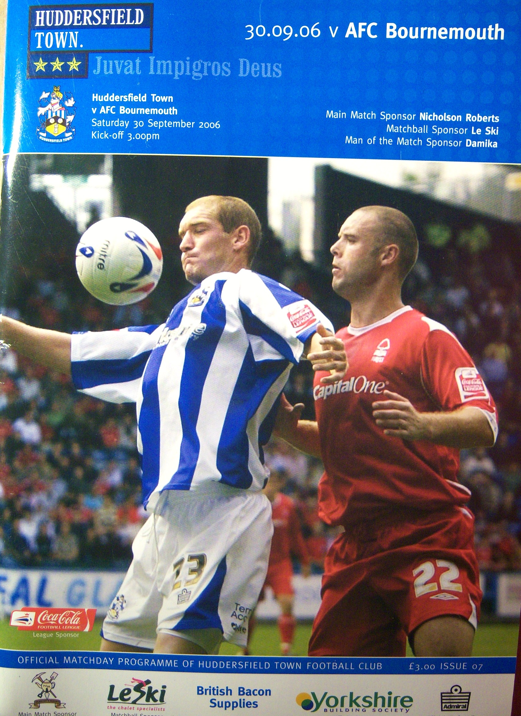 Congratulations to Town on beating Bournemouth the other night; a great day for the club. So it seems like a good time to look back to 30th September 2006 when Huw was at the Town vs Bournemouth match which ended in a 2-2 draw. Huw was 10 years old and in his last year at Upperthong Junior School. Town, being a great community club, had provided cut price tickets to the junior schools for this match. Huw and I used to go 4 or 5 times a season – usually with Nige and Will Bowers, Russ and Sam Briggs, Al and Joel Birkhead. We loved the football but Huw’s highlights of the trip also included the obligatory hot dog and lots of messing about on the 20 minute walk to the stadium.