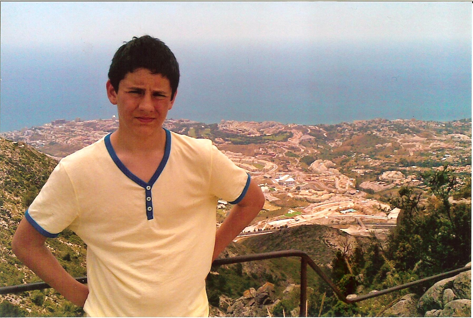 At half term a year ago, Huw wanted to go to Bude but couldn’t. But we had a great holiday in Spain instead and he was so patient about not being able to go to Bude. He was really mature about it and really tolerant of having a holiday with a varied group of people – me, Carys and Granny. Actually he loved all our company – he was that sort of boy. Huw and I played a Spanish game called Real Tennis. He hammered me – here’s a picture of him on the court. But I beat him at pool!