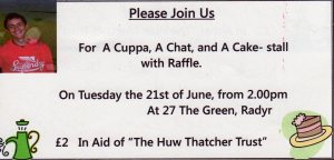 While everyone was busy with 5 a side football and the karate tournament last weekend, Huw’s Granny was making final preparations for her tea / coffee afternoon which took place today on 21st June. The weather obliged during the afternoon; she raised over £500 and they all had a good time doing something positive in Huw’s name.