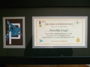 Anuschka Kruger completed the Para10 at Catterick on Sunday September 11th in one hour and 42 minutes. For some reason she was a bit disappointed with the time! As you can imagine it’s a really tough event and it’s a great achievement to finish it in whatever time. Anuschka has raised £600 to be split evenly between Help for Heroes and Huw’s trust. Here is a pic of her medal from last year.Look at the stars, look how they shine for you!