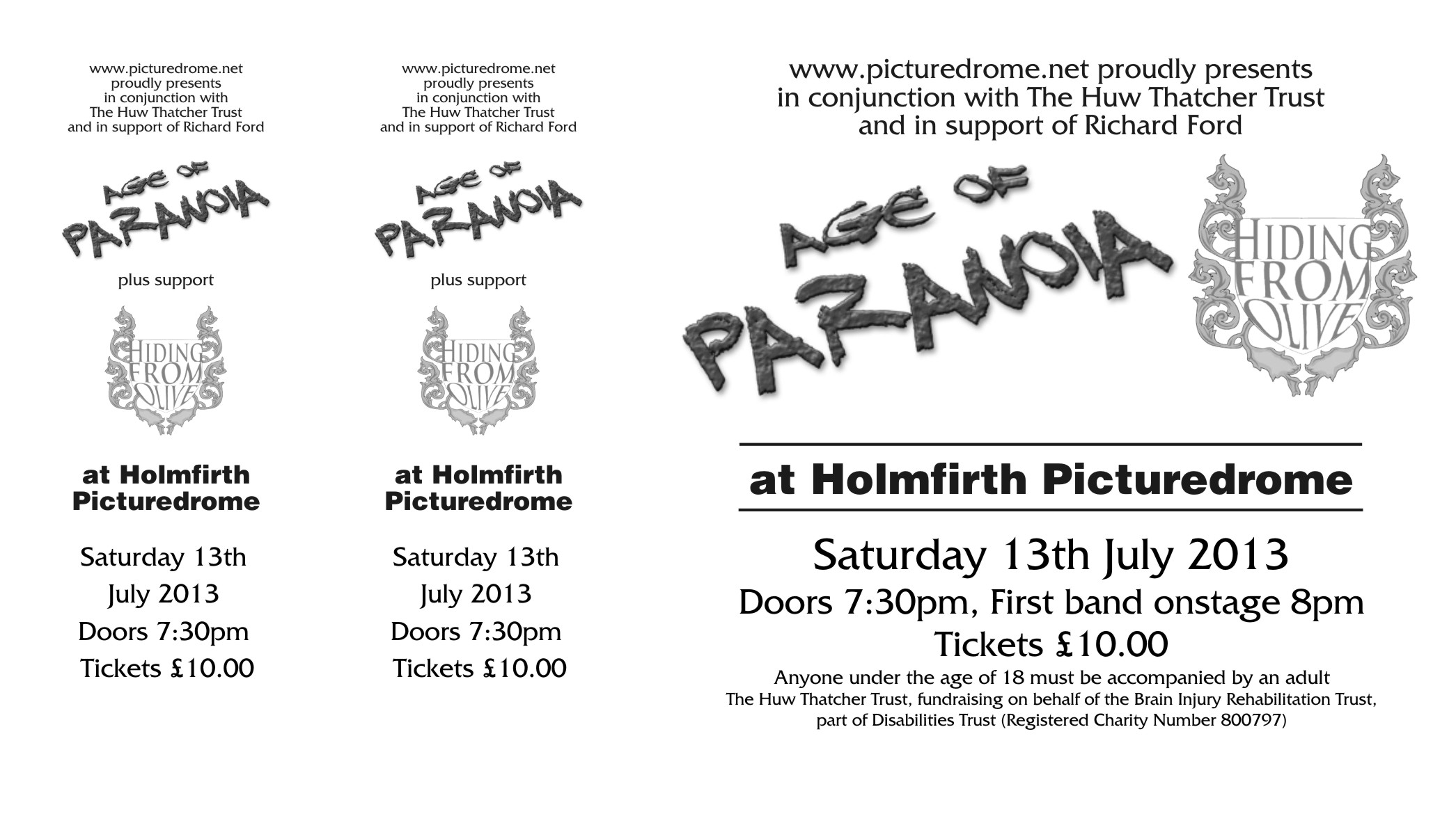 With that in mind it was good to agree dates recently for a number of events to take place in July – those dates can be seen here. We hope everyone is looking forward to these things and more detail will follow soon. And with thanks to Dave Brennan’s organisation here is an image of the Picturedrome Gig tickets.