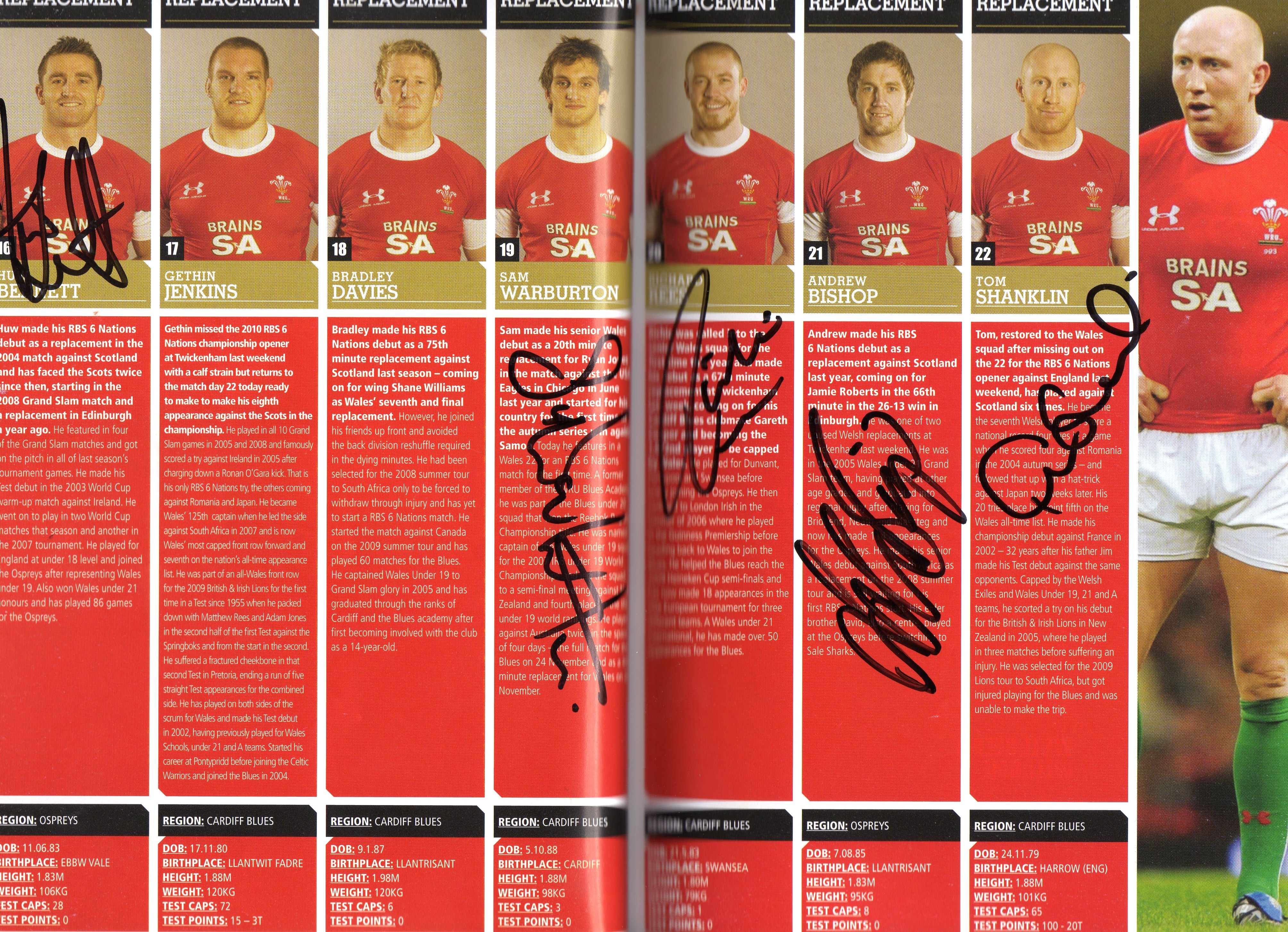 I write this update listening to a radio debate about the British Lions side that will take the field against Australia on 22nd June. I imagine the discussion with Huw about the 15 Welsh players in the squad and his happy recollections of meeting the Welsh rugby squad in 2010. It was the one sport I knew as much about as Huw – when it came to anything else he knew more of the players, clubs and results. Here is a page from a Wales match programme Huw had signed by the players in 2010.
