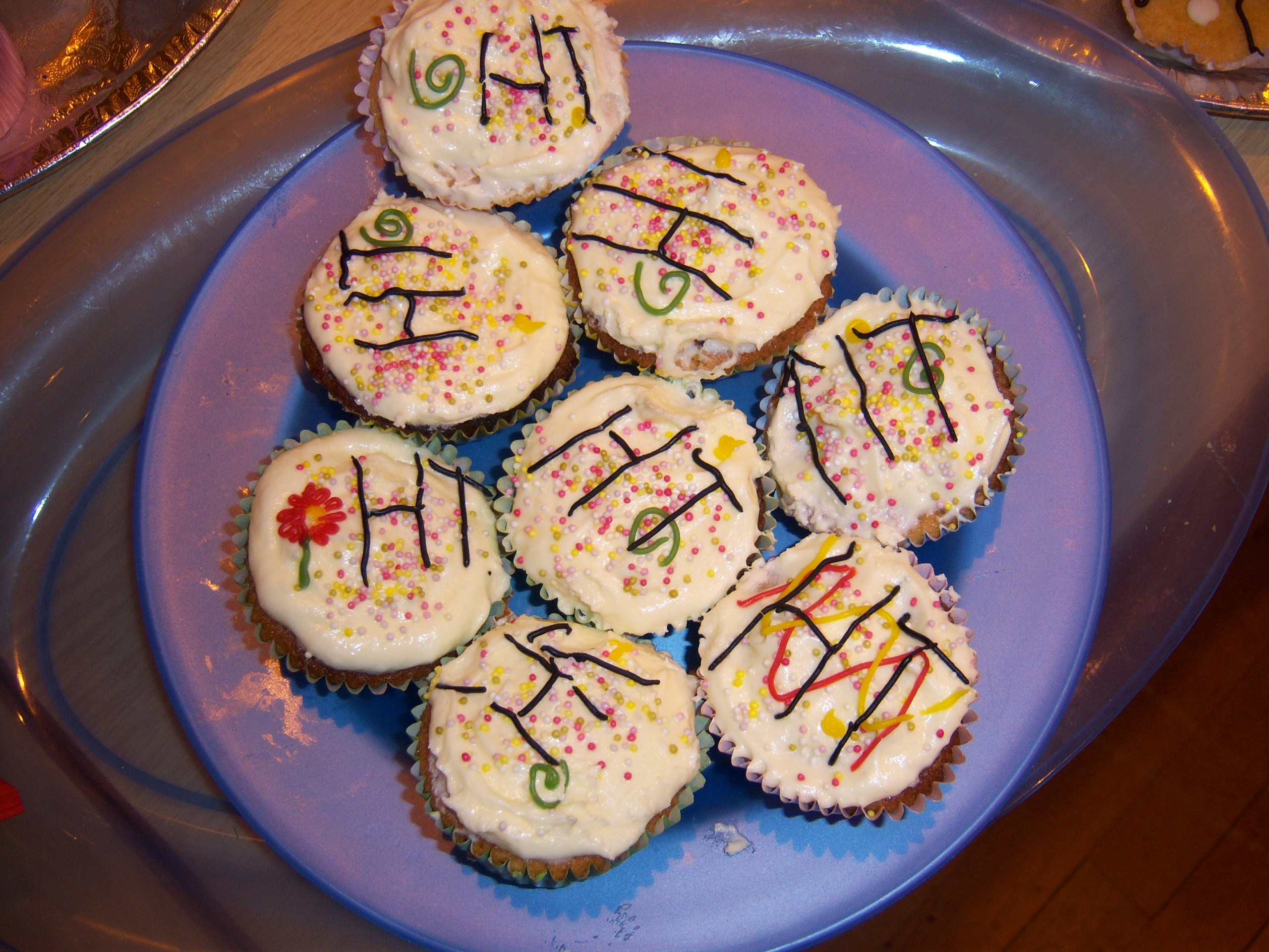 It was about this time that one of the many generous food donations arrived – there was something special about these cakes that made me catch my breath – iced cakes with HT lovingly patterned on each one. HT the handsome boy they all adored and will never forget for the rest of their lives. Whoever made them must have had Huw in their heart when they made those cakes.