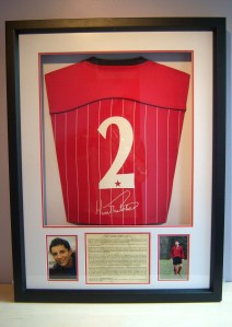 Nick, Jenny and Carys have had a Hepworth United number 2 shirt with photos and a pen- picture framed and it has been on the wall in the Sports Hall corridor – at the top of the stairs. The shirt (pictured) is in a case so is 3D instead of a flat shirt; Huw will always be a part of Holmfirth High School. He will be there in people´s hearts and with his shirt ♥